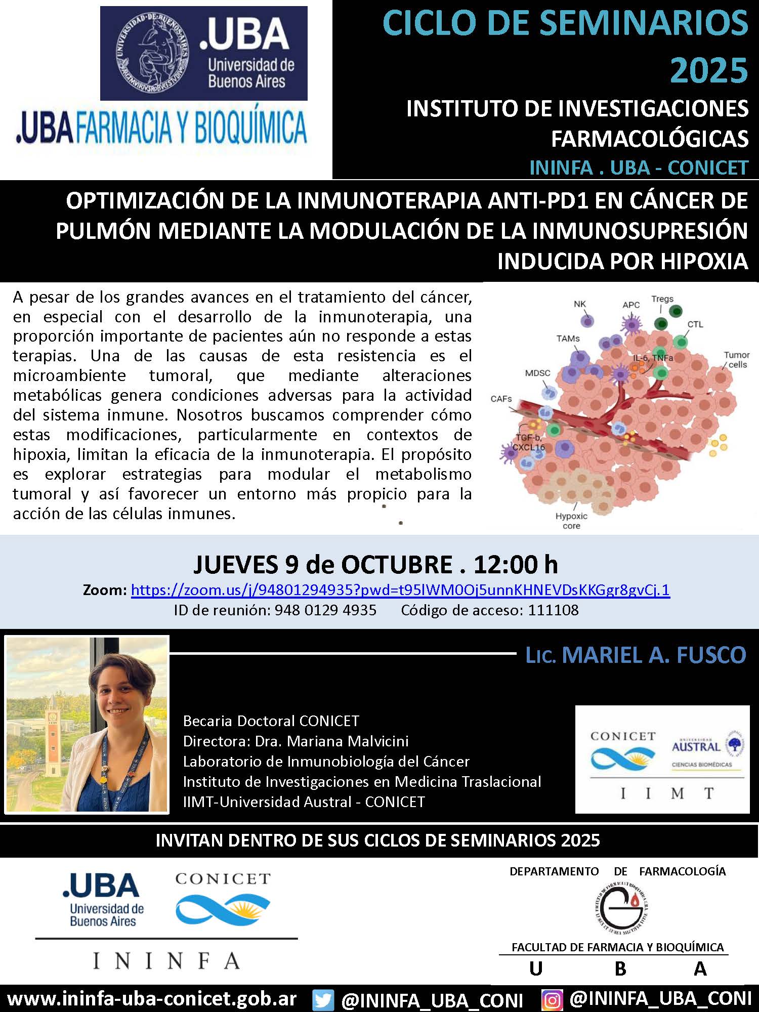 Lic. MARIEL FUSCO. Becaria Doctoral CONICET, Directora: Dra. Mariana Malvicini, Laboratorio de Inmunobiología del Cáncer, Instituto de Investigaciones en Medicina Traslacional, IIMT-Universidad Austral - CONICET.
