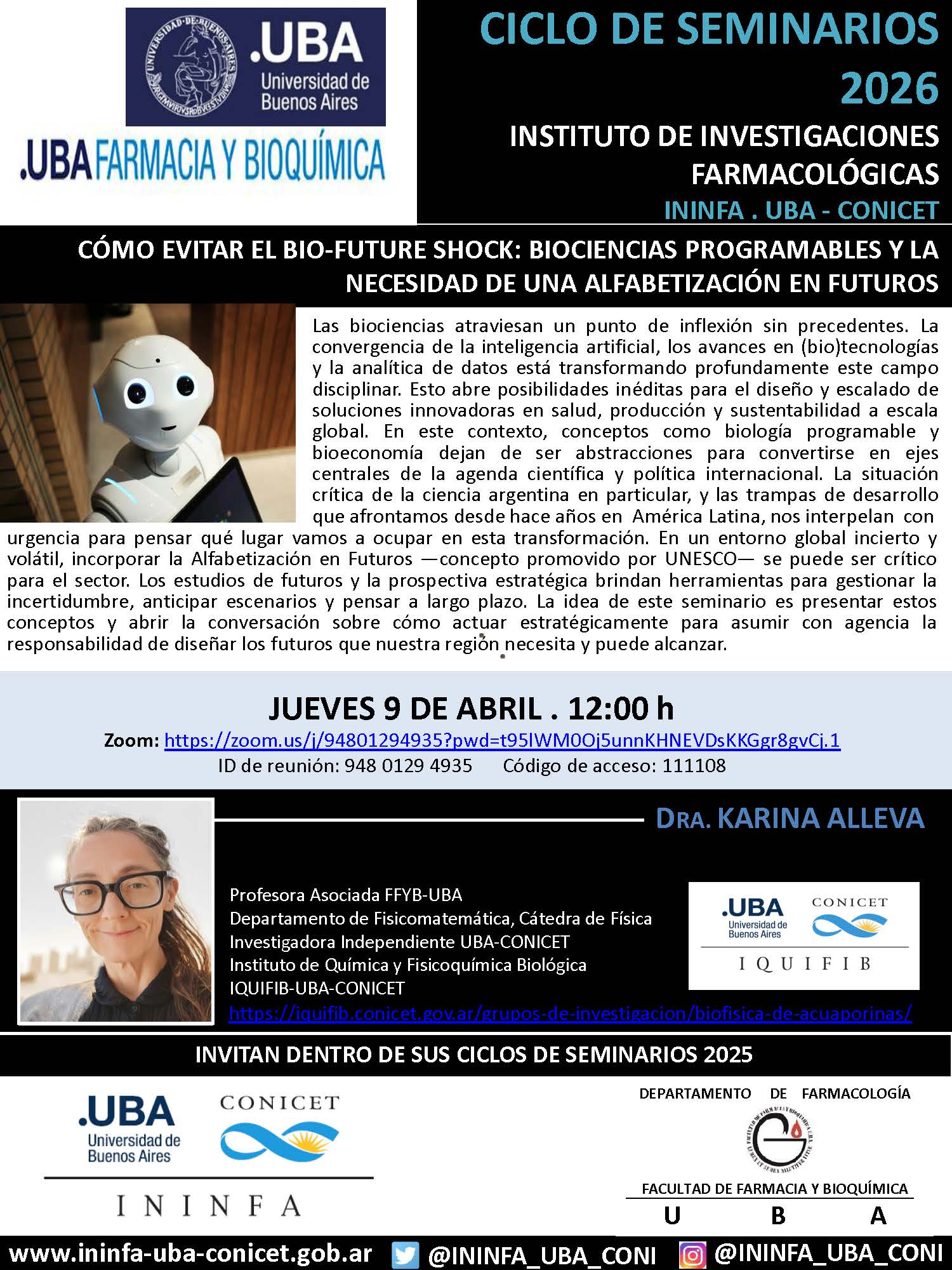 Dra. KARINA ALLEVA. Profesora Asociada FFYB-UBA, Departamento de Fisicomatemática, Cátedra de Física e Investigadora Independiente UBA-CONICET , Instituto de Química y Fisicoquímica Biológica, IQUIFIB-UBA-CONICET.